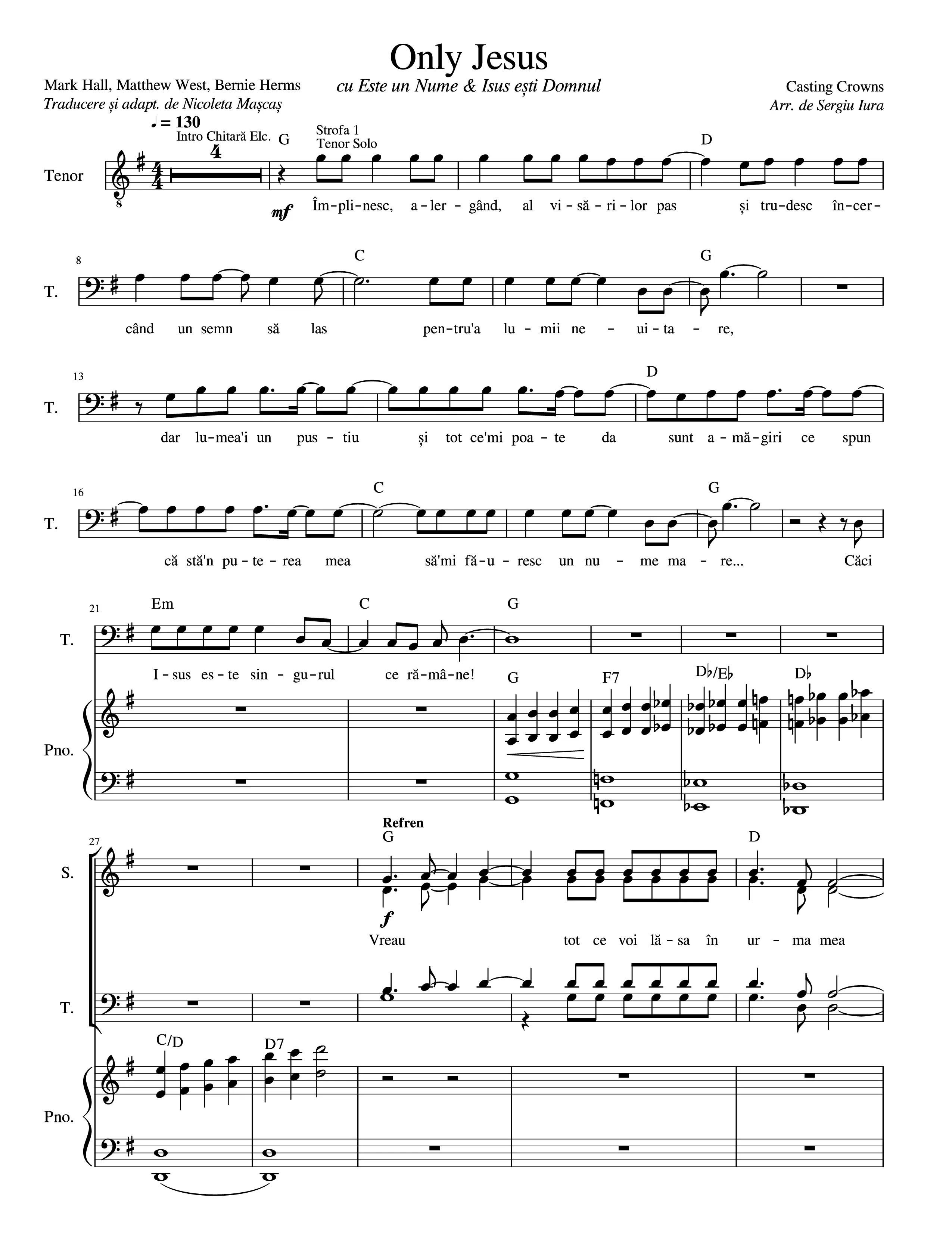 Partitura „Only Jesus”, de Sergiu Iura, potrivit pentru cor.